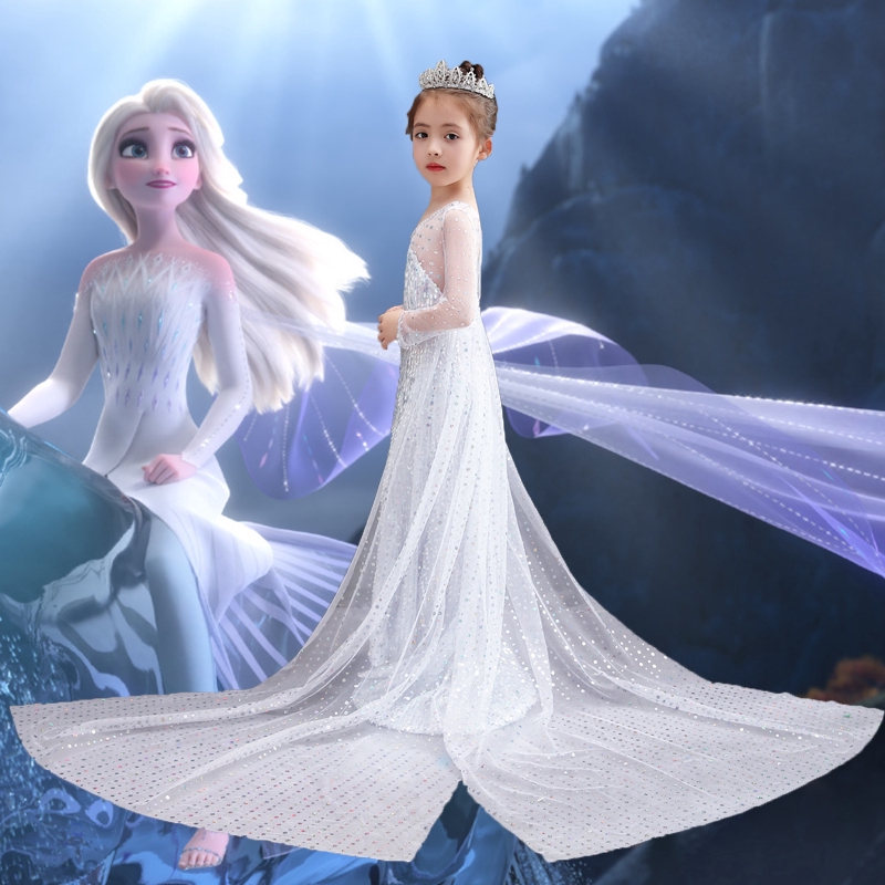Frozen 2 Girls Elsa Dress Kids Halloween Costume Princess Birthday Party Dress Kids Snow Queen White Outfit Shopee Indonesia