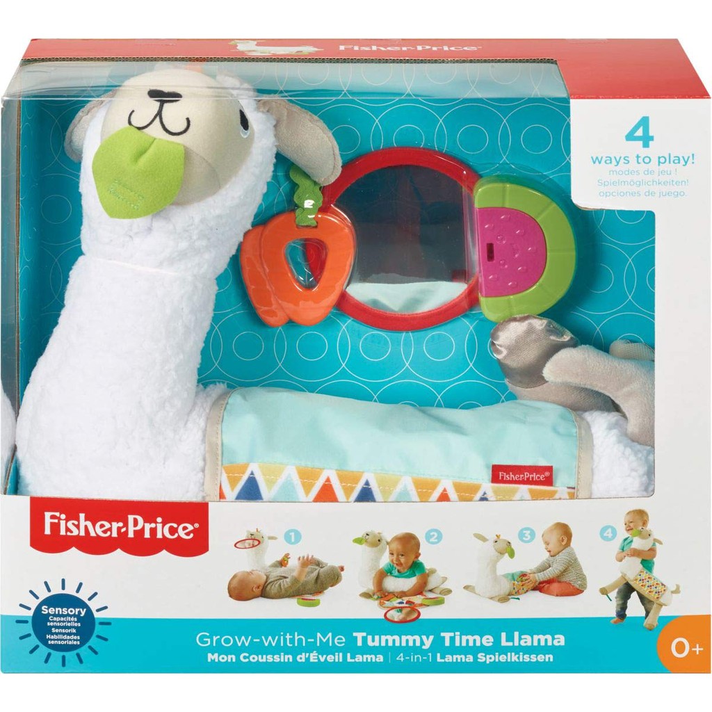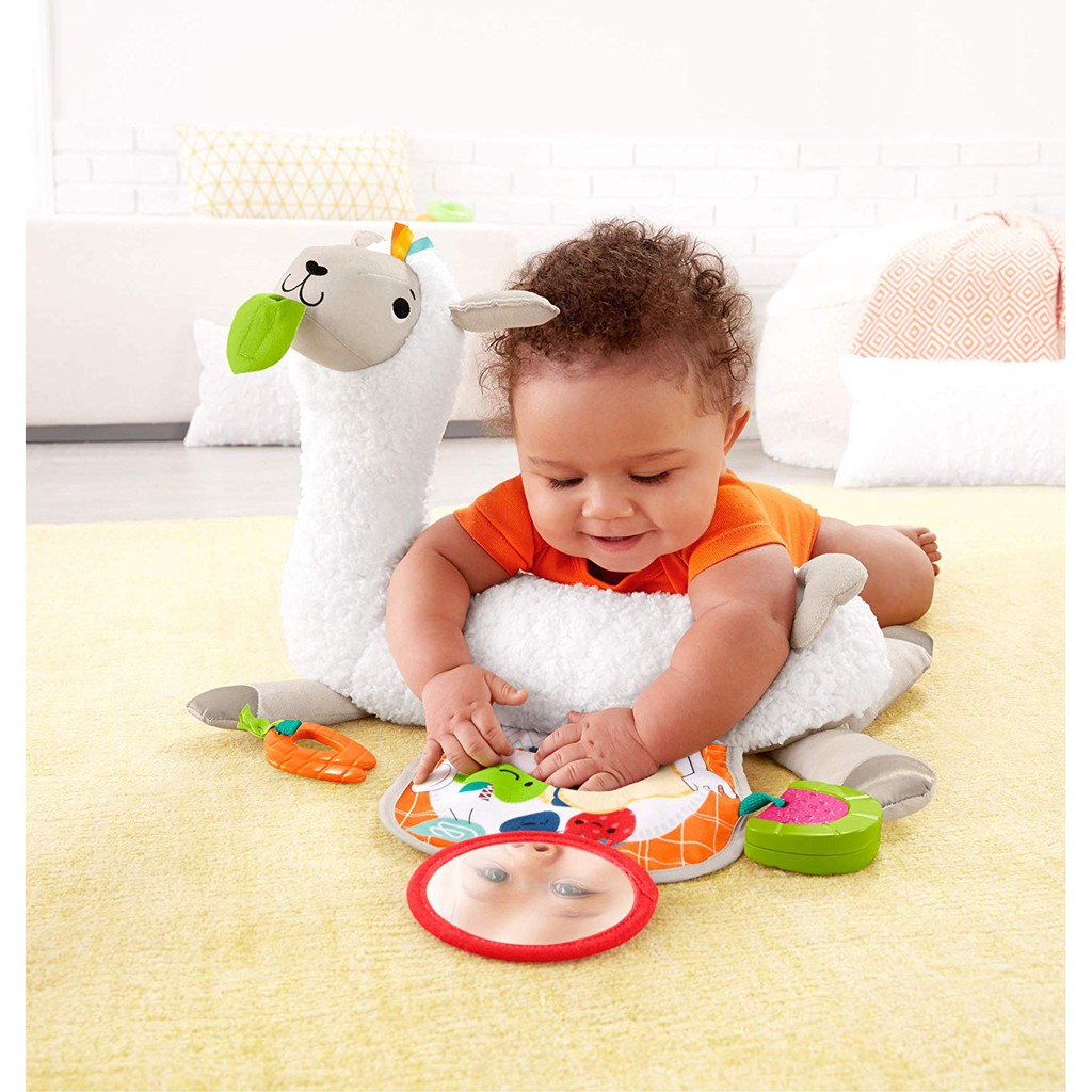 Fisher price grow with me tummy time llama. Little ones can lie on their back and gaze up at the mirror push up with the prop pillow in tummy time sit up to play or play on the go with 3 take-along Fisher-Price baby toys. The Fisher-Price Grow with Me Tummy Time Llama is one snuggly Fisher- Price baby toy. Lay and play t.