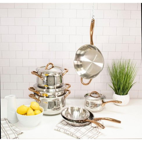 Berghoff Ouro Gold 11pc 18 10 Stainless Steel Cookware Set Rose Gold Handles Metal Lids Target