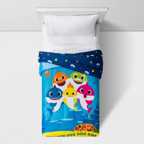 Baby Shark Twin Full 2 Piece Bedding Set Brand New And Sealed For. The comforter features Baby Shark and family swimming on one side and an all-over aquatic print on the reverse. 45 out of 5 stars with 27 reviews.