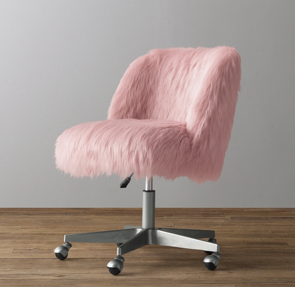 Pink faux fur desk chair. Easy-roll casters allow you to move about any room with ease while the height-adjustable seat allows the chair to work with a variety of table heights. With a manufactured metal frame the seat features a full back fixed arms and a swivel seat all wrapped in pink fuzzy faux fur upholstery. Faux Fur Pink Desk Chairs Youre currently shopping Desk Chairs filtered by Pink.